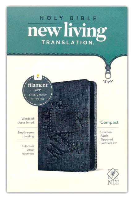 NLT – New Living Translation Bible: Compact Size With Zip: Charcoal Patch (ISBN:9781496455512)