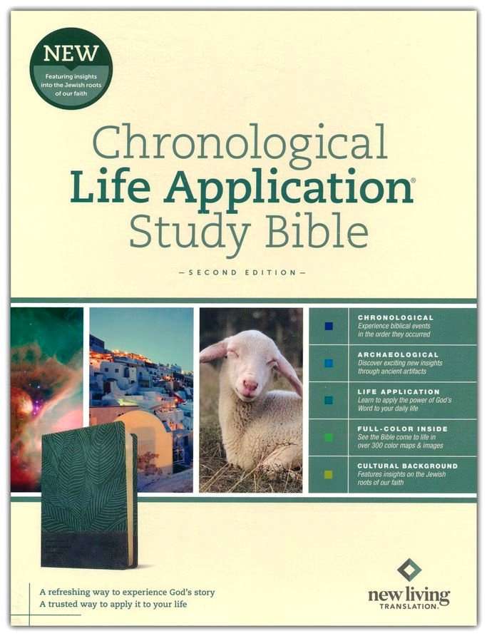 NLT Chronological Life Application Study Bible: Palm Forest Teal Leather Like (ISBN:9781496475435) (D)